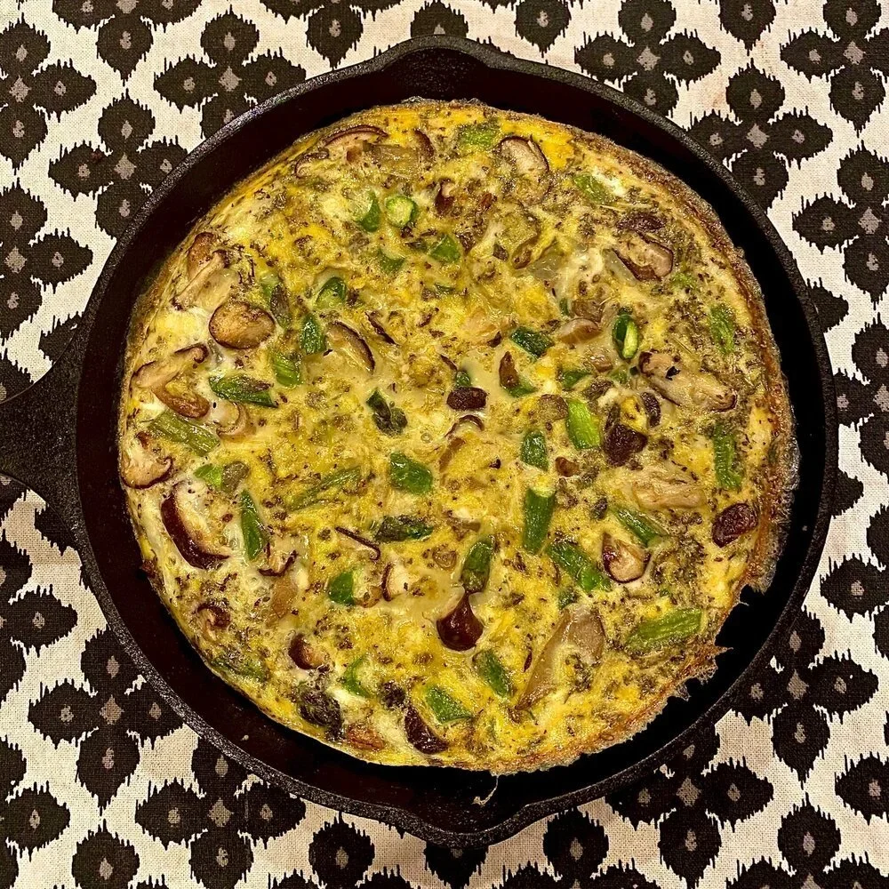 Frittatas are easy to make, easy to reheat, and even easy to freeze. This could also be made in a muffin tin for a portable version for whenever we’re eating on the go again.