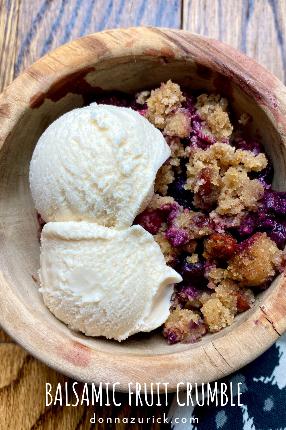 Place the fruit in a 9x9 inch baking dish, and pour balsamic vinegar over it. Toss fruit slightly to coat with the vinegar.