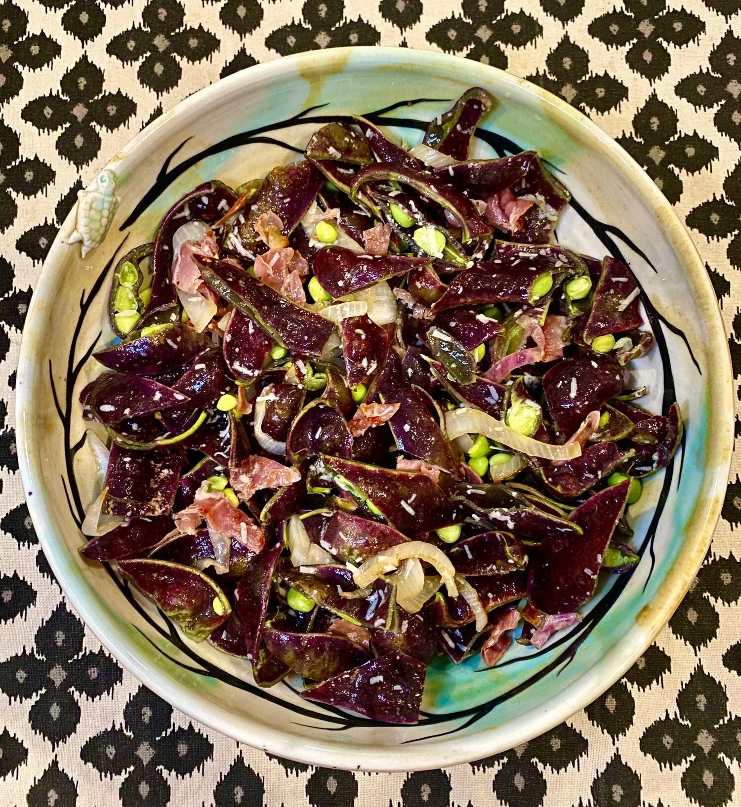Last week, I got a bunch of beautiful purple snow peas, They look so beautiful, and are absolutely delicious. This salad came out of a need for some easily prepped salads for a busy week & the items I found in my fridge. It’s simple to make, and will make a great addition to your summer food prep, or a socially distanced family picnic! Enjoy!